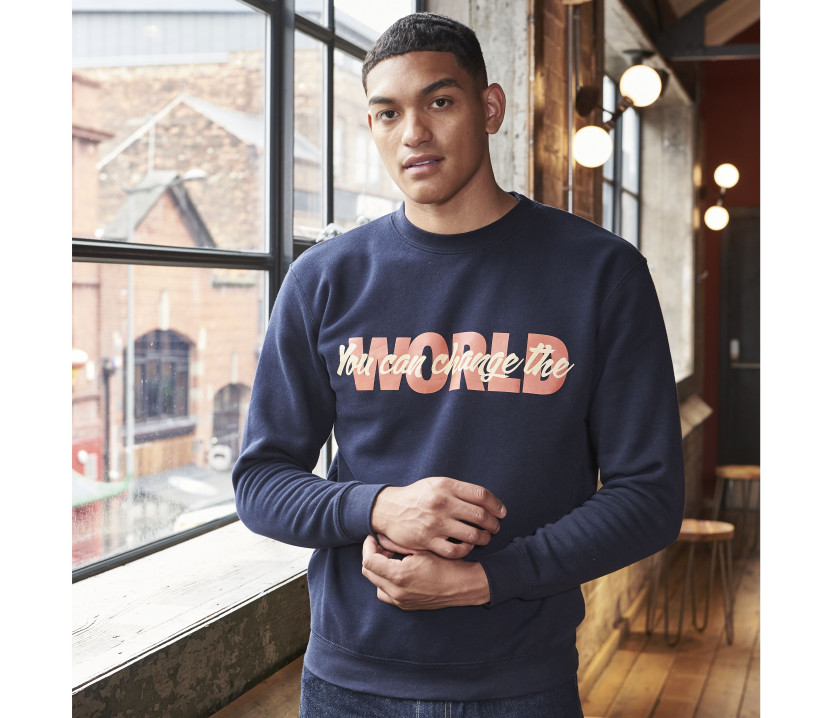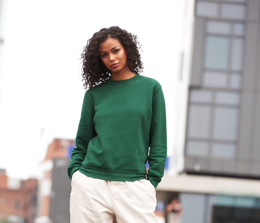 Sweat col rond. Manches droites. Coupe moderne. Intérieur brossé. Étiquette détachable. Double couture. Col, taille et poignets en bords côte. Surface douce pour un rendu d'impression idéal. Usine et fil certifiés.
