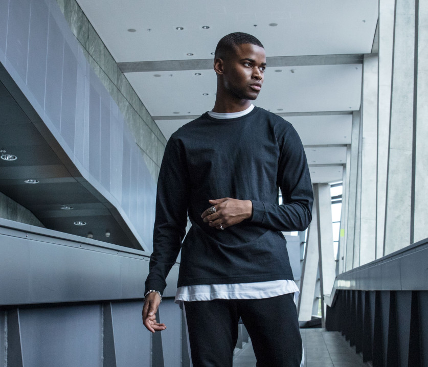 Larges bords côte aux poignets. Coupe confortable. Col rond. Look sportif.