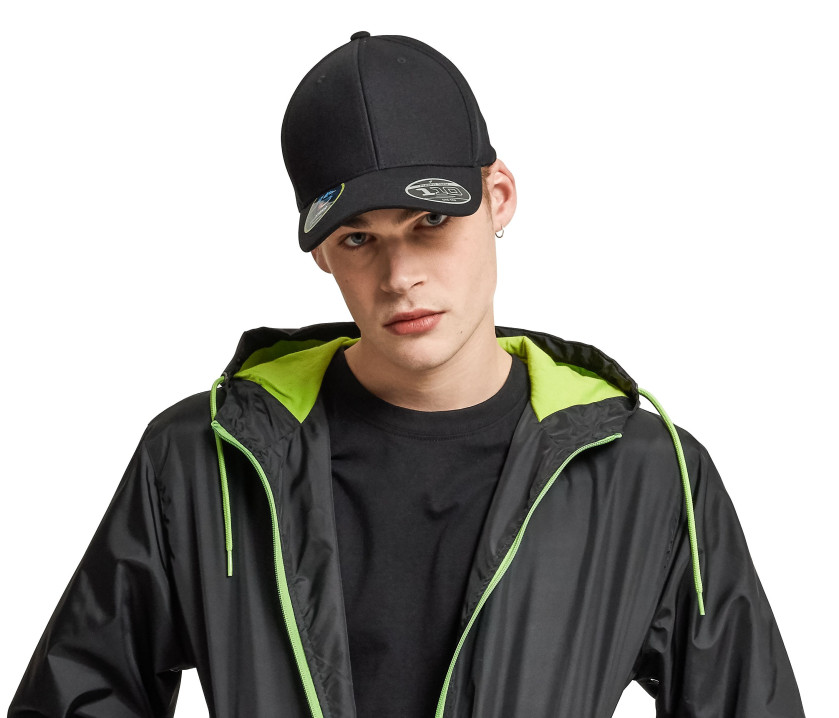 6 panneaux. Déperlante. Évacue l'humidité. Casquette structurée. Dessous de la visière ton sur ton. Œillets cousus. Visière incurvée. Fermeture par boucle et Velcro. 8 coutures sur la visière. Convient aux tours de tête compris entre 52 et 63cm.