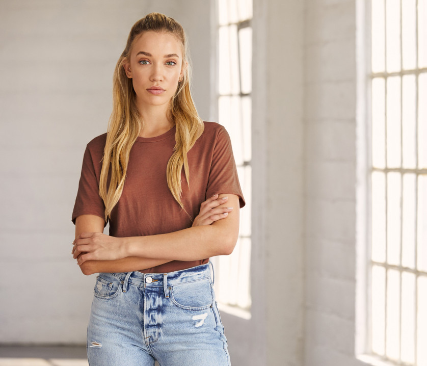 50% polyester/25% coton peigné Ringspun Airlume/25% soie artificielle.