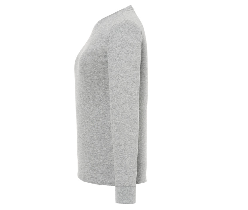 Tee-shirt femme manches longues à bord côte. Coupe tubulaire. Double surpiqûre au cou, épaules et taille. Col avec bord côte élasthanne. Bande de propreté au cou et épaules. Etiquette amovible.