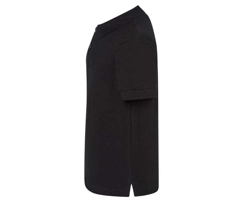 Maille piquée. Plaquette 2 boutons. Col et manches en bords côte 1x1. Fentes latérales. Étiquette détachable.