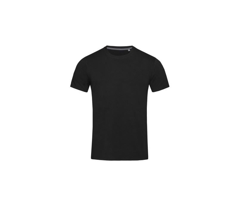 Tee-shirt près du corps. Bande de propreté contrastée. Coutures aux épaules renforcées. Col fin dans la même matière. Coutures latérales. Petite étiquette de taille dans le cou. Étiquette d’entretien dans la couture latérale.