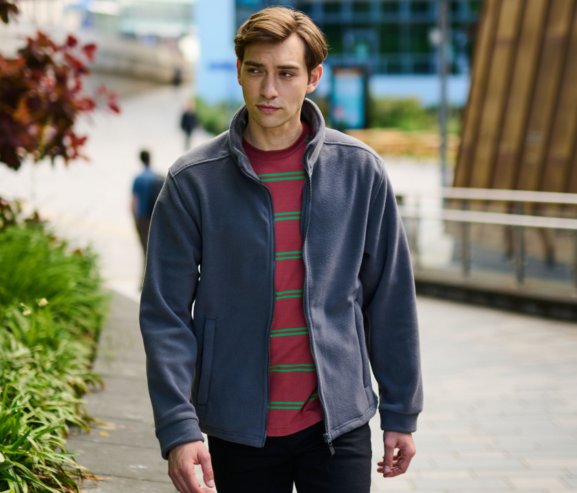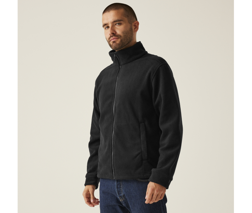 Anti-peluche. Poignets en polaire. 2 poches avant zippées. Taille ajustable par cordon.