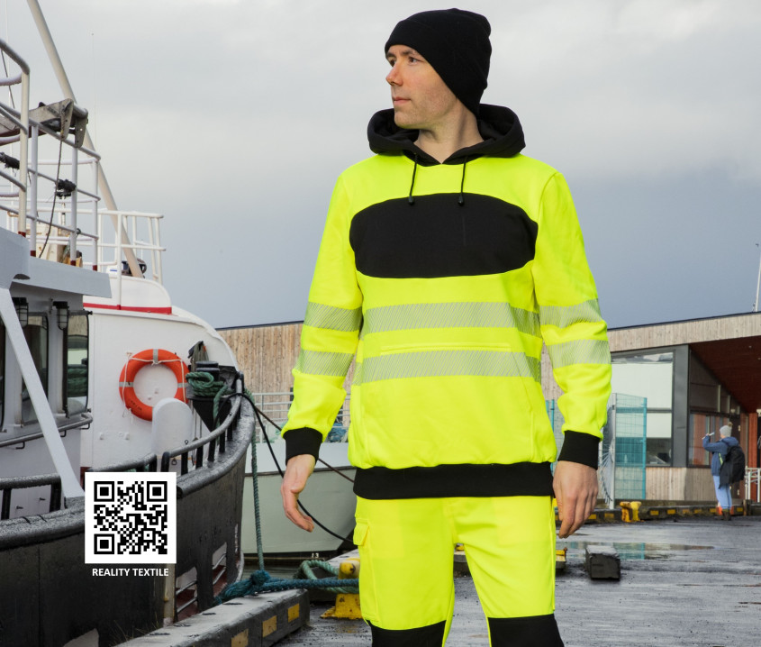 - 2 bandes réfléchissantes de 5 cm de large au corps et aux manches. Col et poignets noirs en bord côte. Intérieur de la capuche doublé et contrasté. Polyester respirant et doux à l'extérieur/coton doux pour la peau à l'intérieur. Protection solaire UPF 40+. Grande zone d'impression. Certifié EN ISO 20471:2013/A1:2016 Class 3.