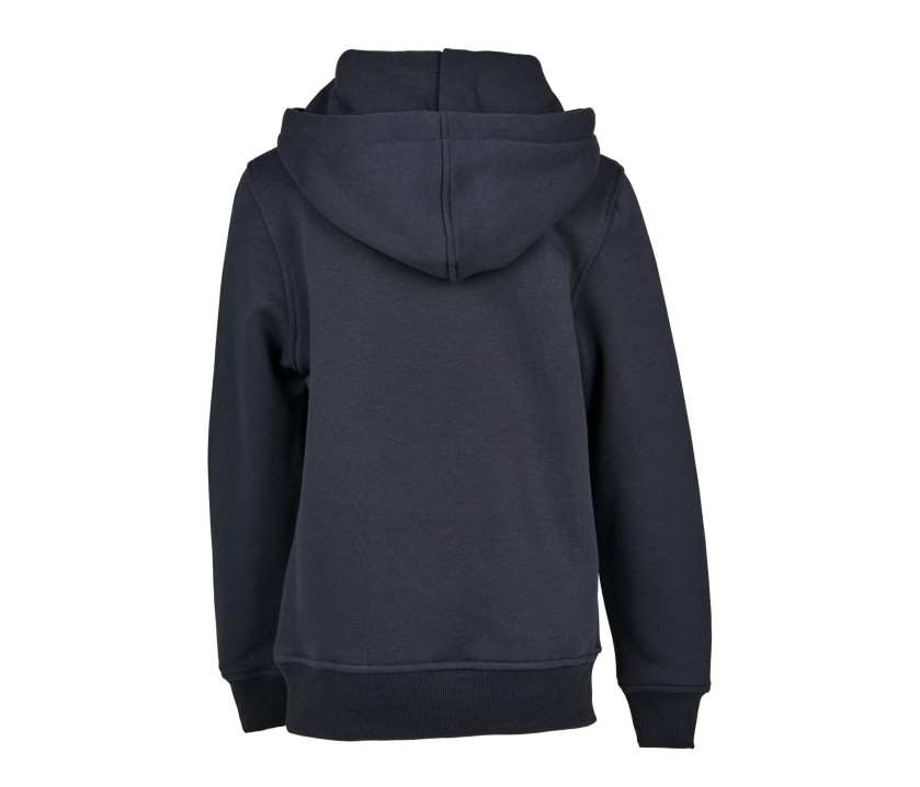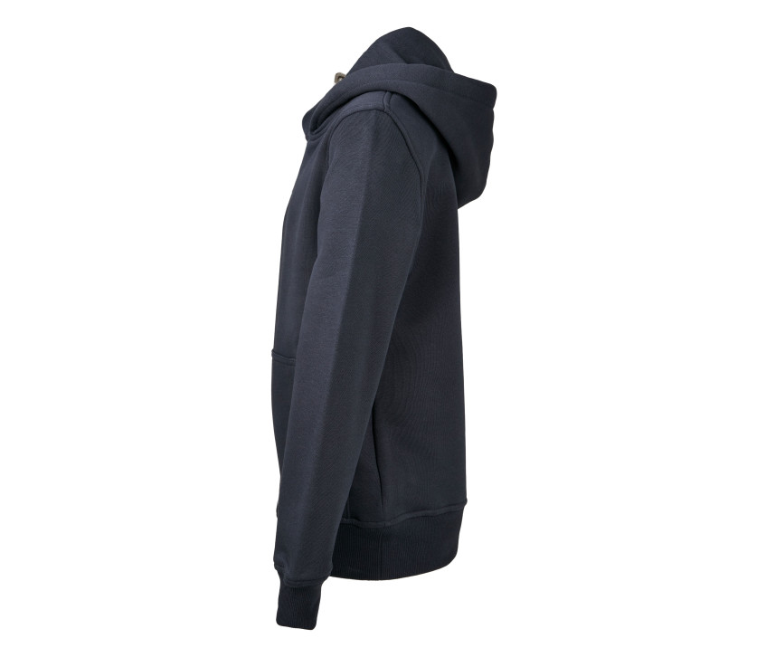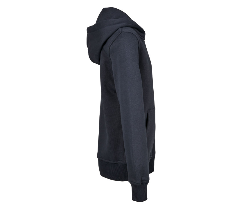 Puce de taille au col. Bande de propreté au col. Bord côte aux manches et à la taille. Poche kangourou. Capuche sans cordon. Manches droites.