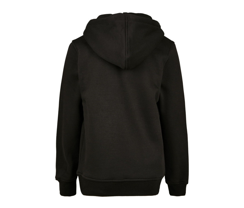 Puce de taille au col. Bande de propreté au col. Bord côte aux manches et à la taille. Poche kangourou. Capuche sans cordon. Manches droites.