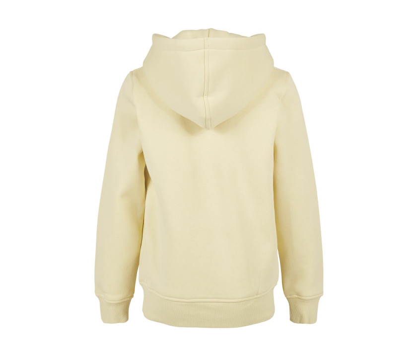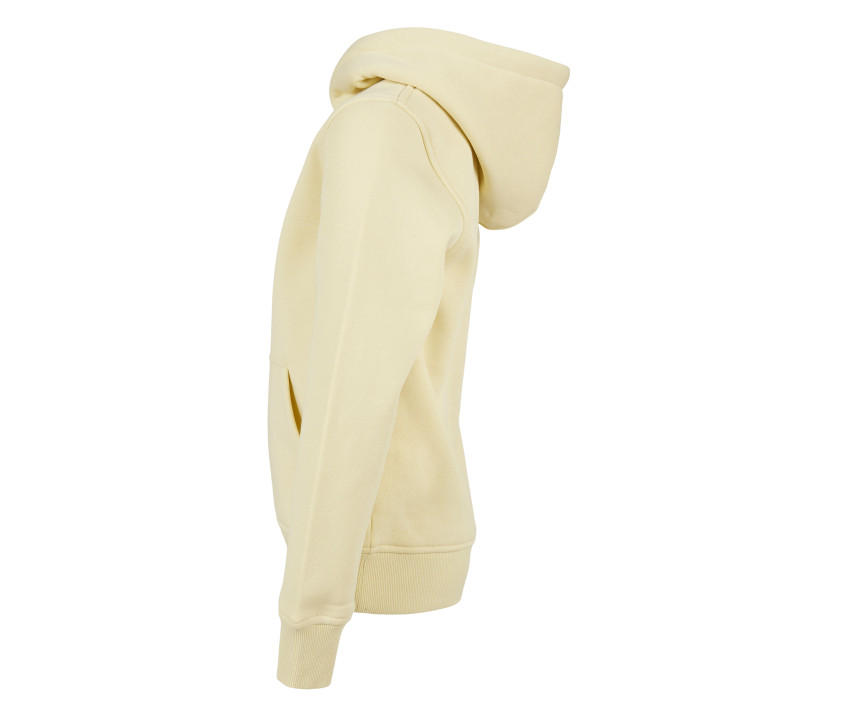 Puce de taille au col. Bande de propreté au col. Bord côte aux manches et à la taille. Poche kangourou. Capuche sans cordon. Manches droites.