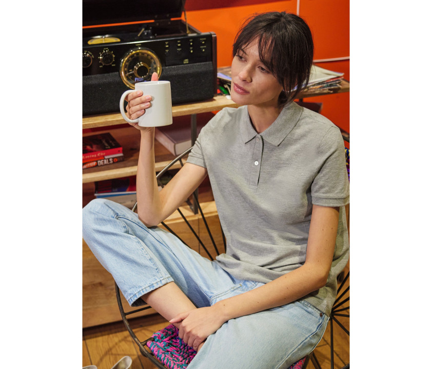 Polo femme 180 - Maille piquée. Plaquette renforcée 2 boutons. Col et poignets en bord côte 1x1.