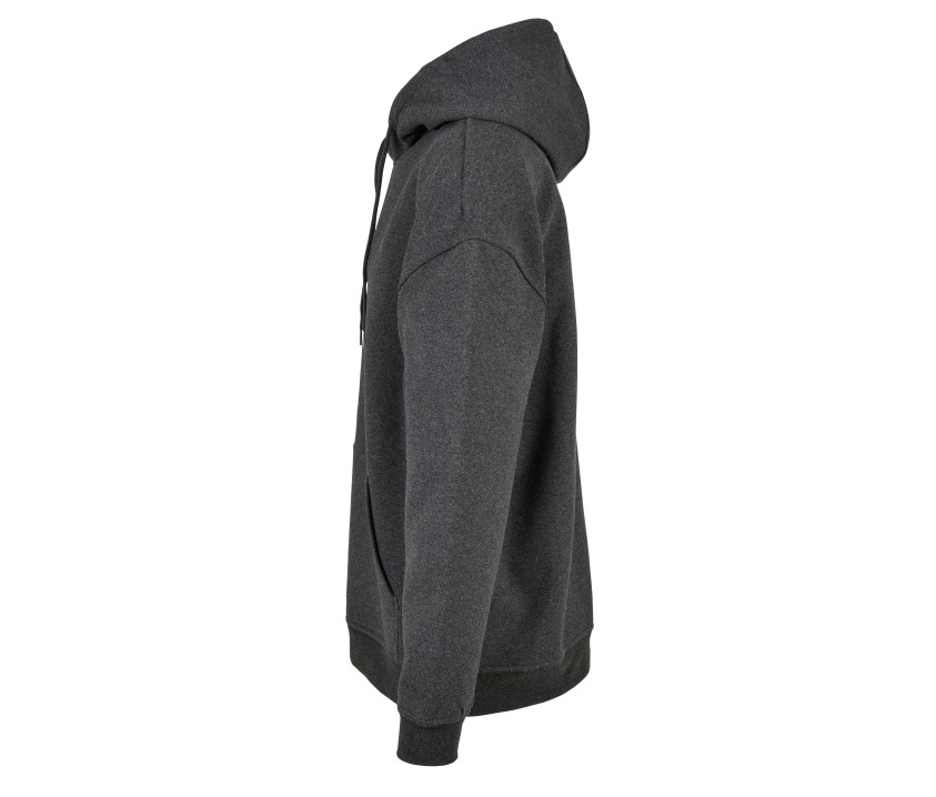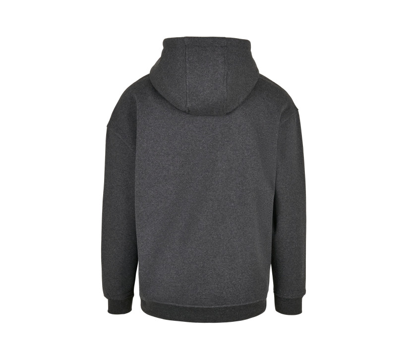 Coupe très ample. Manches droites. Capuche ajustable par cordons. Poche kangourou. Bord côte épais aux poignets et à la taille. Puce de taille au col.