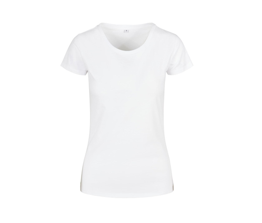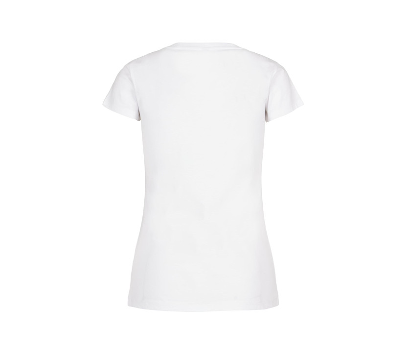 Coupe ajustée. Col en bord côte. Puce de taille au col.