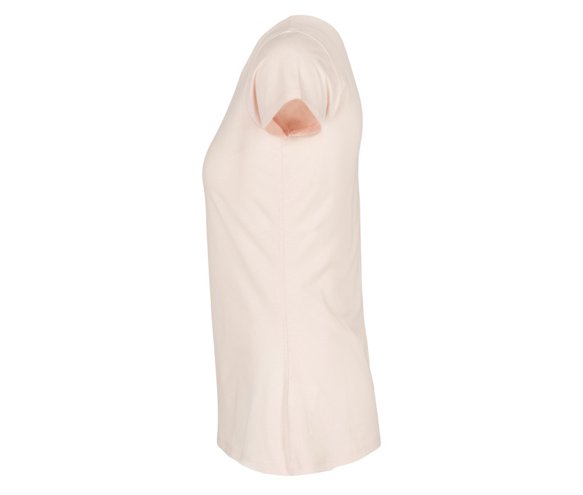 Coupe ajustée. Col en bord côte. Puce de taille au col.
