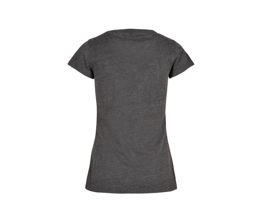 Coupe ajustée. Col en bord côte. Puce de taille au col.