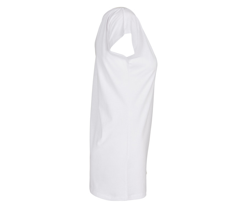 Coupe ample. Large encolure pouvant s'étirer sur une épaule. Bouts de manches retournés.