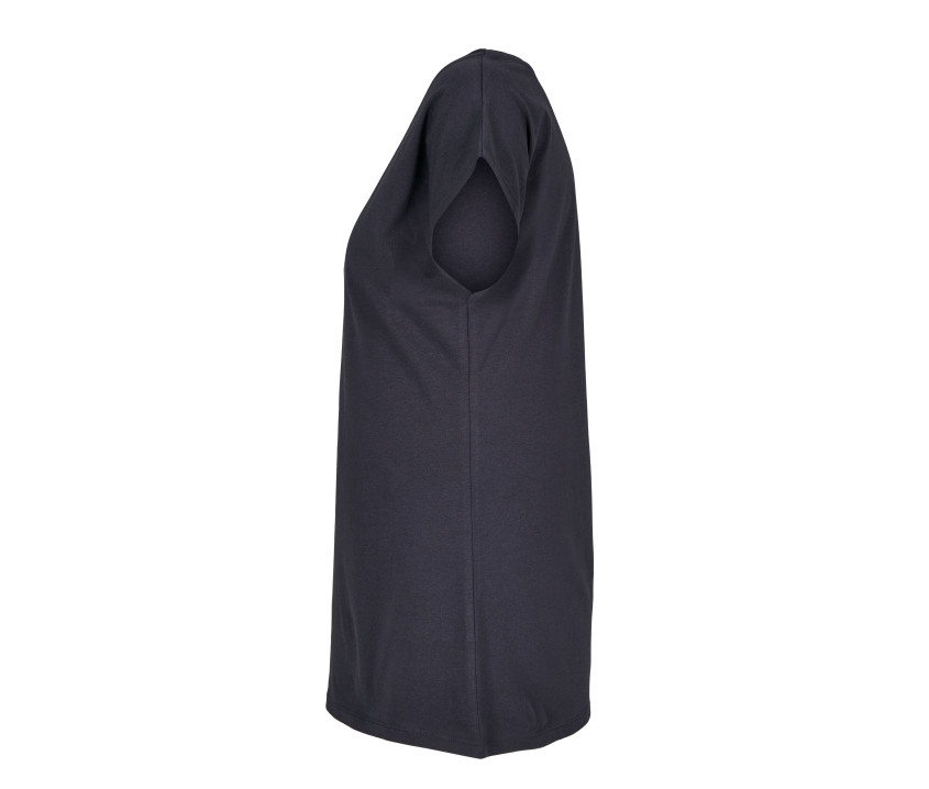 Coupe ample. Large encolure pouvant s'étirer sur une épaule. Bouts de manches retournés.