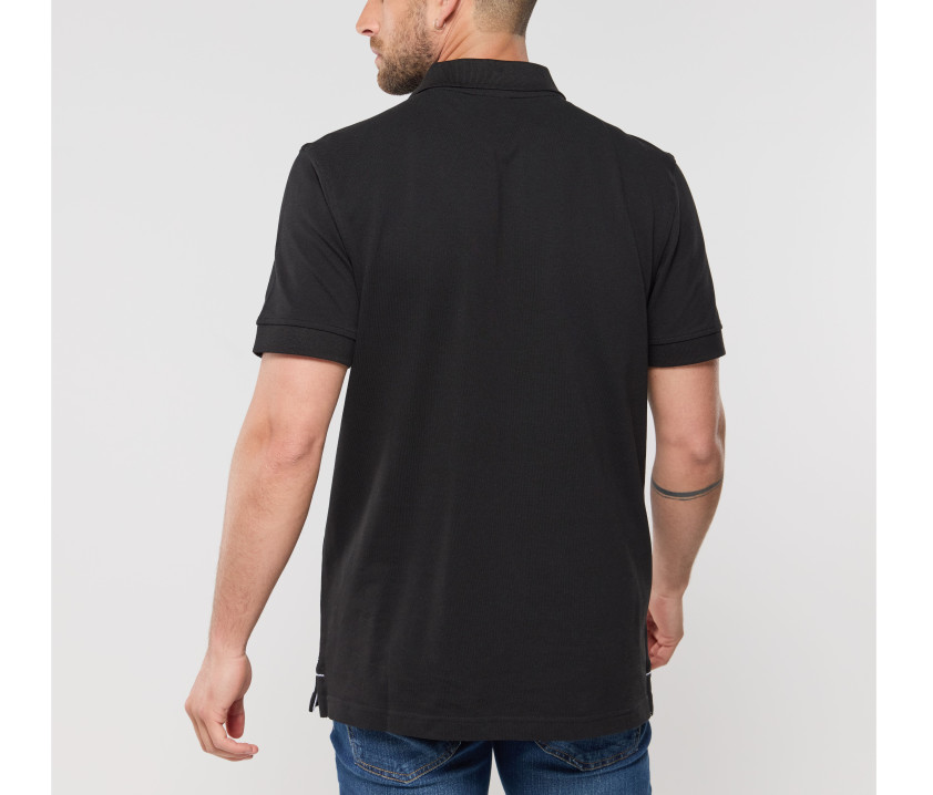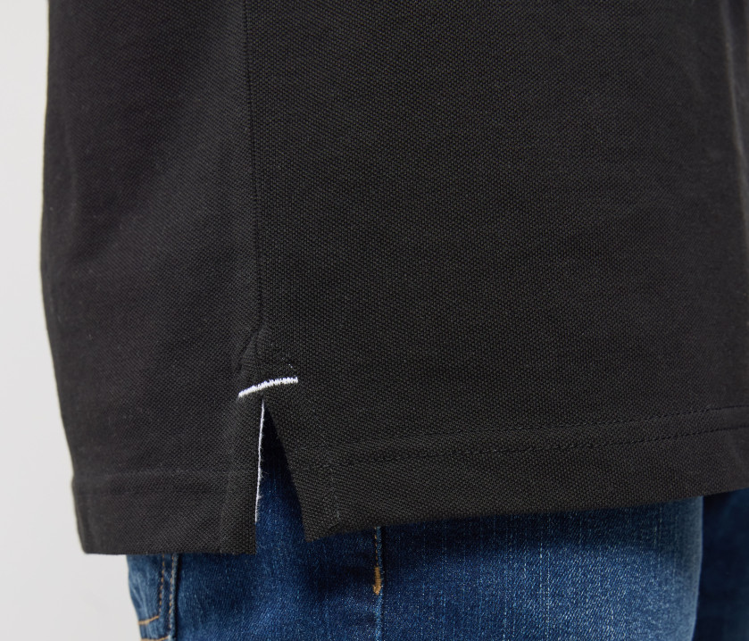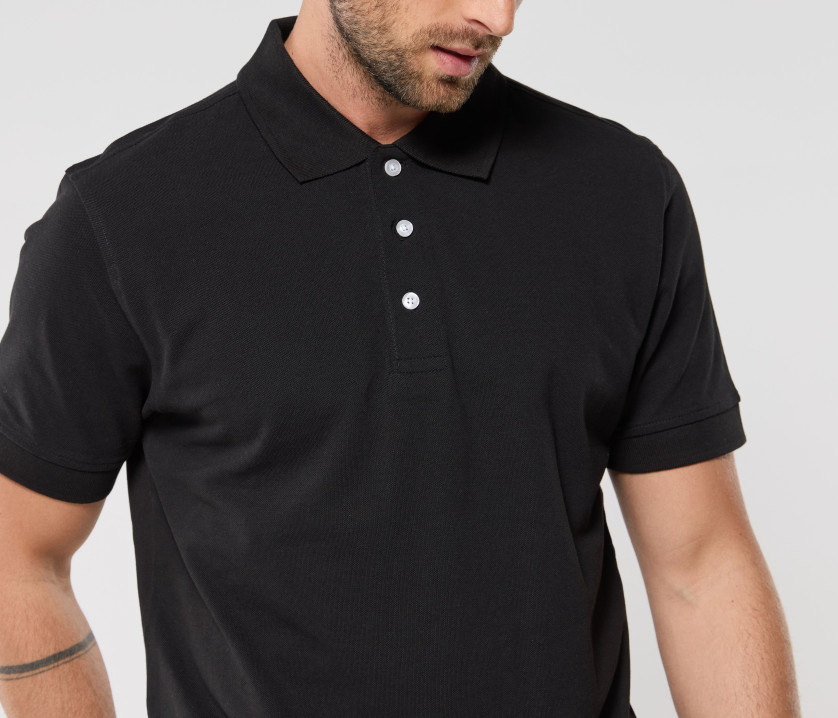 Bande de propreté contrastée au col. Bord côte aux manches et col. Plaquette 3 boutons de couleurs contrastées. Lavable à 60°.