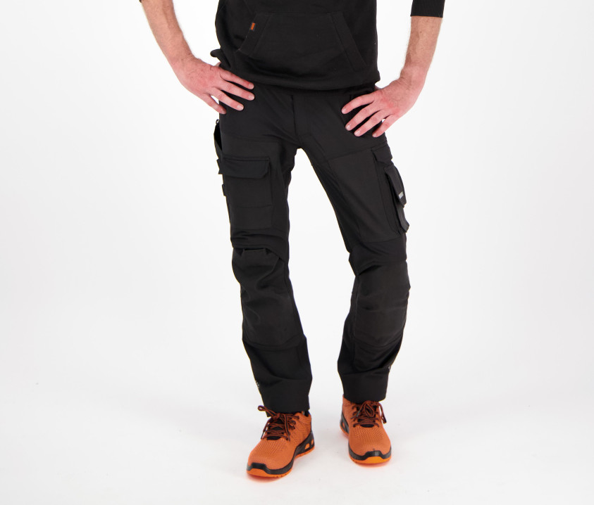 Stretch dans les 4 sens. Ceinture avec élastique et cordon de serrage. 2 poches latérales. 1 poche cuisse avec fermeture éclair. 1 poche cuisse avec rabat. 1 petite poche sur la poche cuisse. 1 poche mètre. 2 poches arrière. Renforcement aux genoux. Certifié EN ISO 13688:2013.