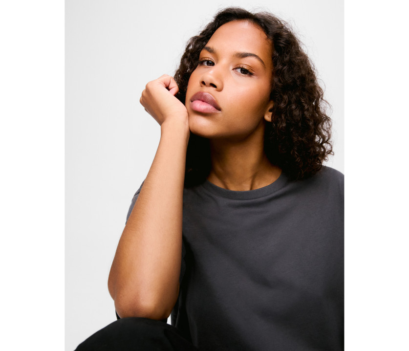 Coupe avec épaules tombantes loose fit. Tee-shirt sans étiquette au col pour le re-branding