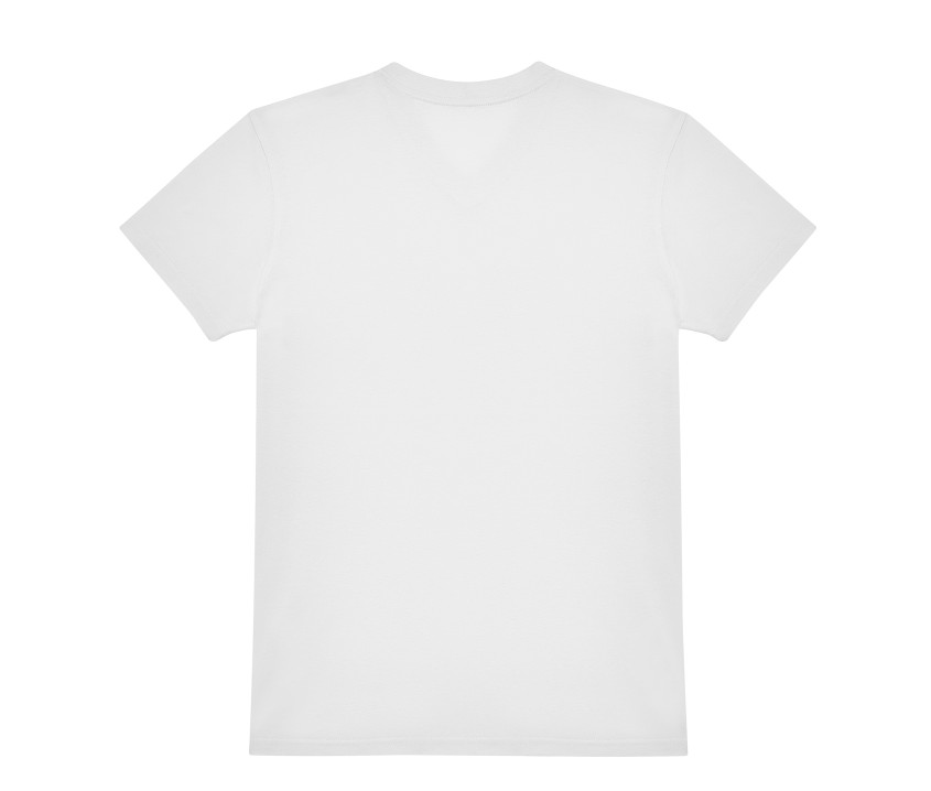 Coupe moderne. Coutures latérales. Col V. Bande de propreté au col. Matière résistante et douce.