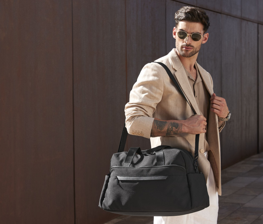 Compartiment principal zippé. 3 poches zippées à l'intérieur du compartiment principal. 2 grandes poches zippées aux extrémités. Convient en bagage cabine.