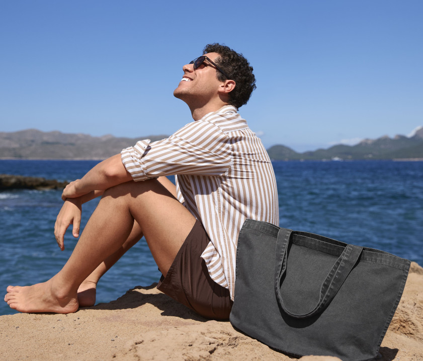 Effet délavé. Peut être porté à la main ou sur l'épaule. Longueur des anses : 58cm. Base ovale.