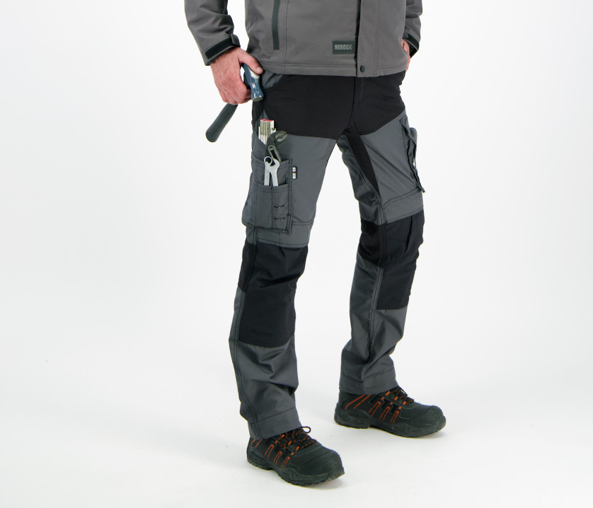 Pantalon multi-poches avec parties extensibles dans les 4 sens à l'entrejambe et aux genoux. 2 poches latérales. 1 poche téléphone. 2 poches sur les cuisses avec poches sur les jambes. 1 poche à mètre. 1 poche stylos. 2 poches arrière. Poches aux genoux en renfort Cordura®. 1 porte-badge. 1 boucle pour marteau. Ourlet à rallonge. Bouton recouvert.