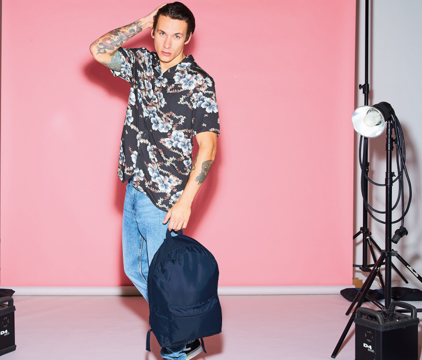 Bretelles ajustables. Ultra léger. Imperméable. Poches centrale et frontale zippées. Surface d'impression : 21x15cm.