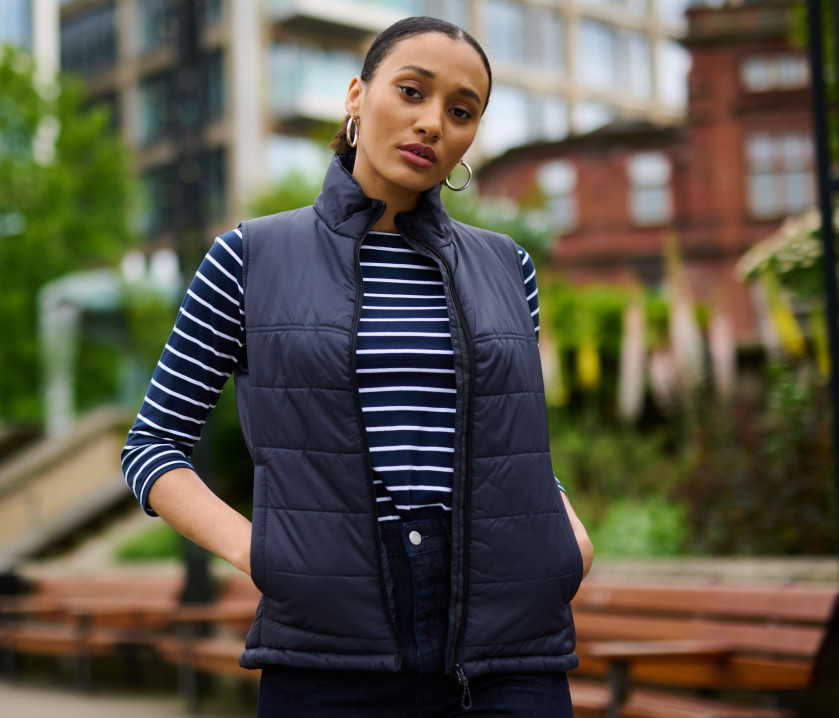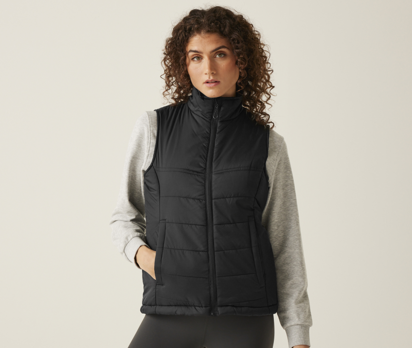 Isolation Thermo-Guard. Bodywarmer matelassé : 180 g/m². 2 poches avant. Taille ajustable par cordon élastiqué. Poche intérieure. Accès personnalisation dissimulé. Coupe cintrée.