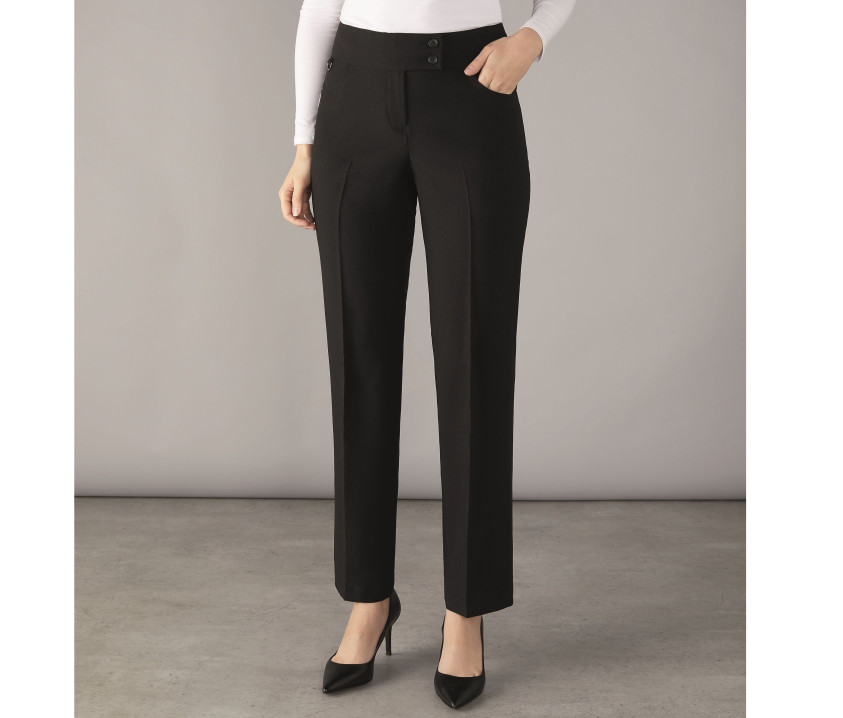 - Pantalon femme à 1 pli. 2 longueurs sur certaines tailles, U : bas non cousu. Fermeture par braguette et bouton.