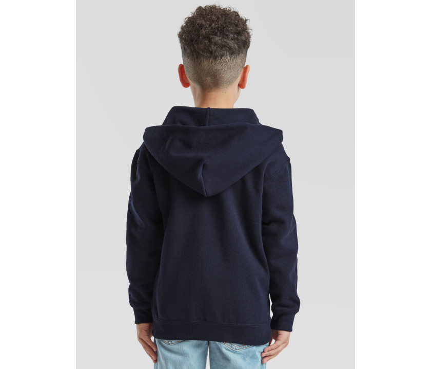 Sweat grand zip capuche enfant. Taille et poignets en bord côte coton/Lycra® pour un meilleur maintien. Poches frontales. Capuche doublée sans cordon selon la législation européenne pour les enfants. Zip étroit et invisible pour une surface d'impression harmonieuse.