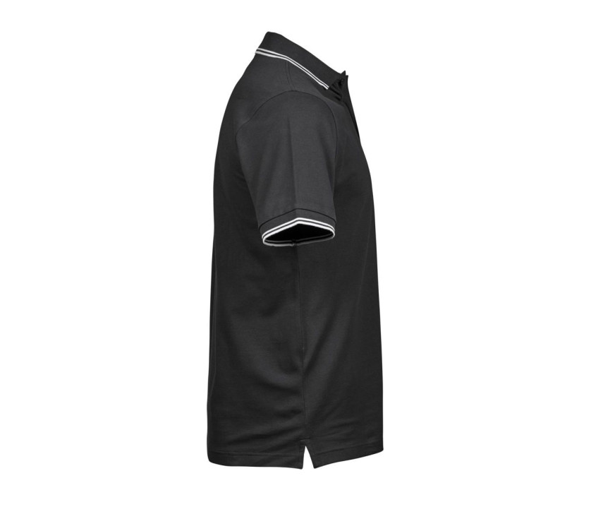 Maille piquée mini. Liserés contrastés sur col et manches. Col à côte tricoté avec Lycra. Pré-rétréci. Bande de propreté. Plaquette 3 boutons ton sur ton.