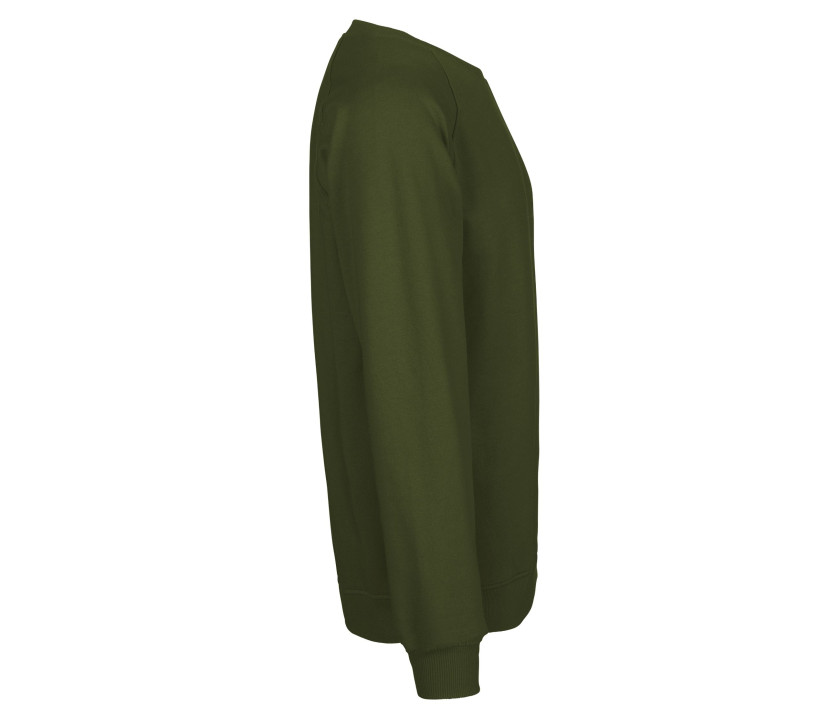 Sweat en coton bio brossé. Intérieur brossé. Col ras du cou. Manches raglan. Bords côte à la tailles et aux poignets.