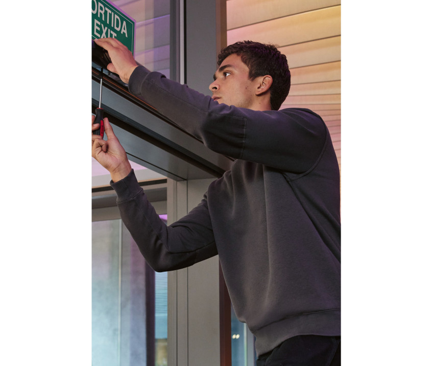 PST : Perfect Sweat Technologie. Excellente stabilité au lavage grâce à l’utilisation d’un fil polyester entre les 2 faces du molleton. Sweat col rond manches droites. Col, manches et bas en côte 2x2 avec élasthanne. Coutures latérales. Lavage 60°. Empiècement aux manches.