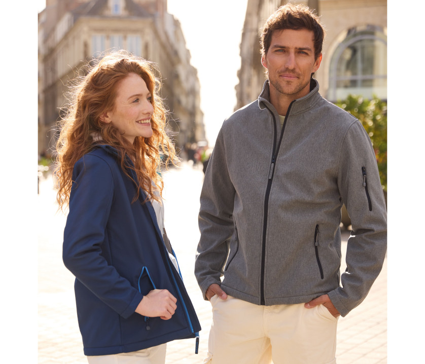 Veste Softshell homme 3 couches - 3 couches. Respirant, imperméable, coupe-vent. Rabat de protection intérieur sous fermeture Éclair® et protège-menton. Languette Pen Duick détachable sur fermeture Éclair® principale.