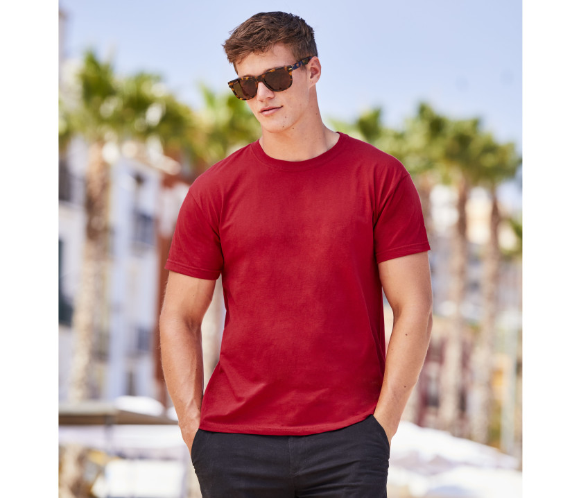 Tee-shirt col rond 140 - Double piqûre col, manches et bas. Coupe tubulaire. Maille et jauge plus fines pour une impression à haute résolution.