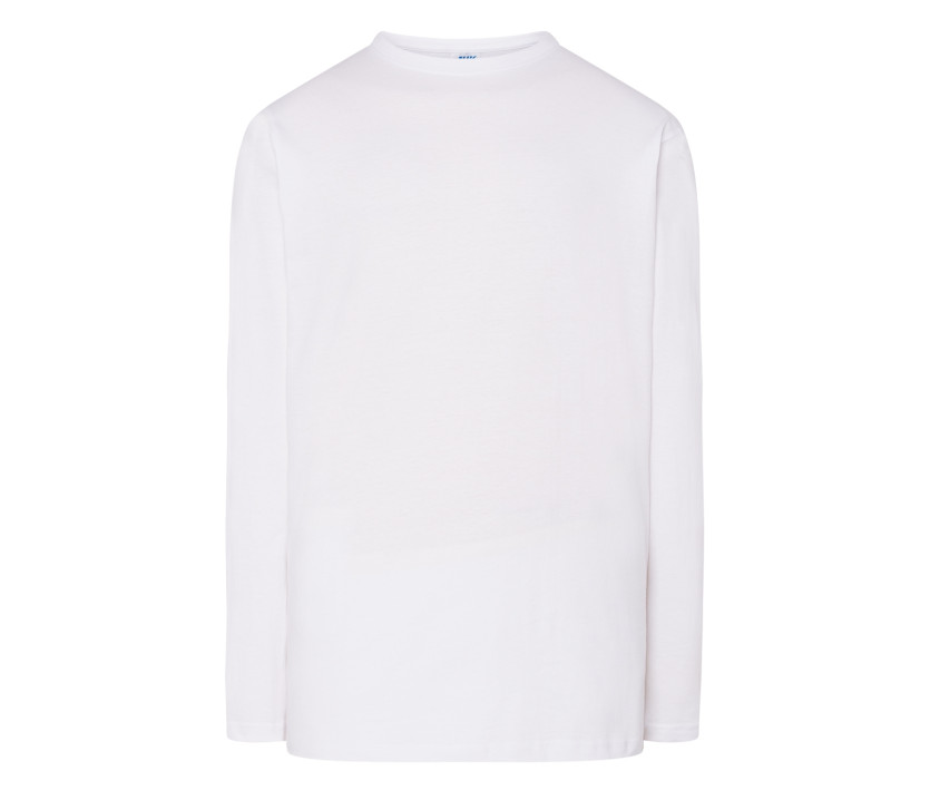 Tee-shirt manches longues 160 - Double surpiqûre au cou, épaules et taille. Étiquette amovible. Col avec bord côte élasthanne.