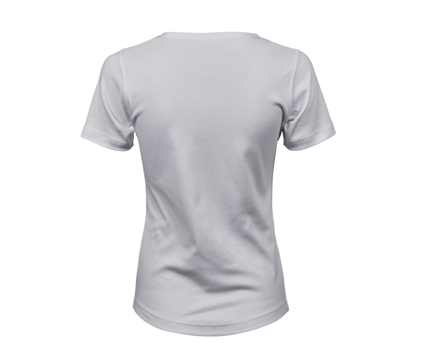 Tee-shirt femme - Coupe ajustée. Col en bords côte. Double couture. Lavé aux enzymes.