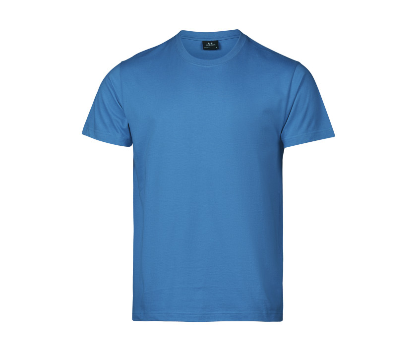 Tee-shirt homme - Coupe moderne. Col double avec élasthanne. Bande de propreté d'épaule à épaule. Lavé aux enzymes.